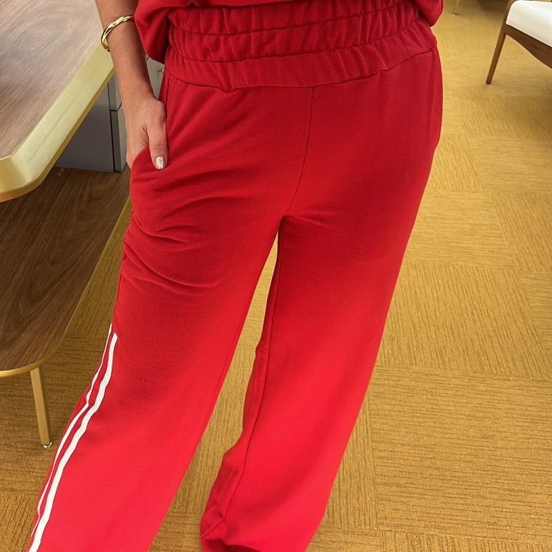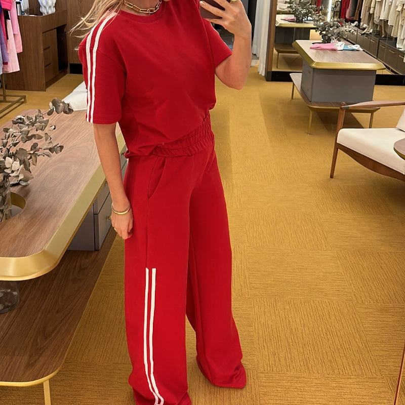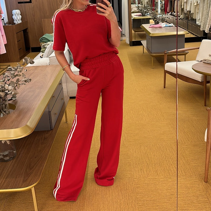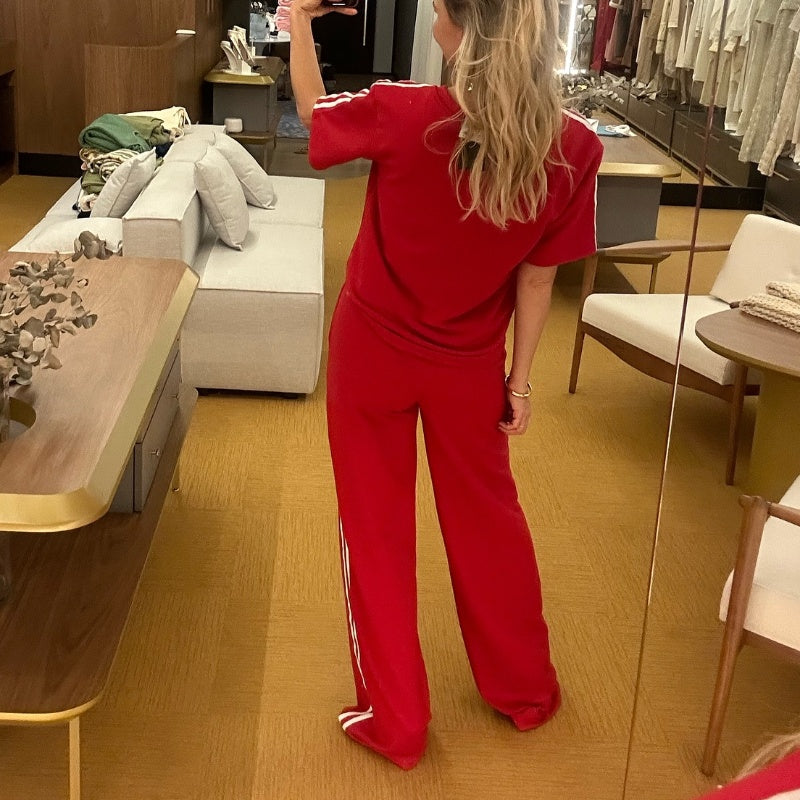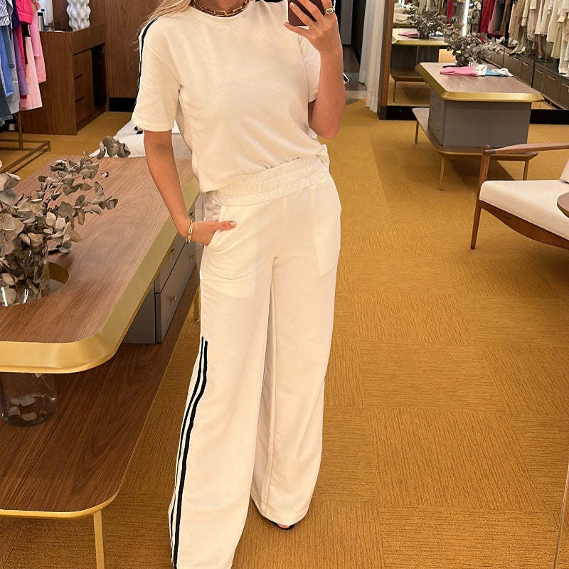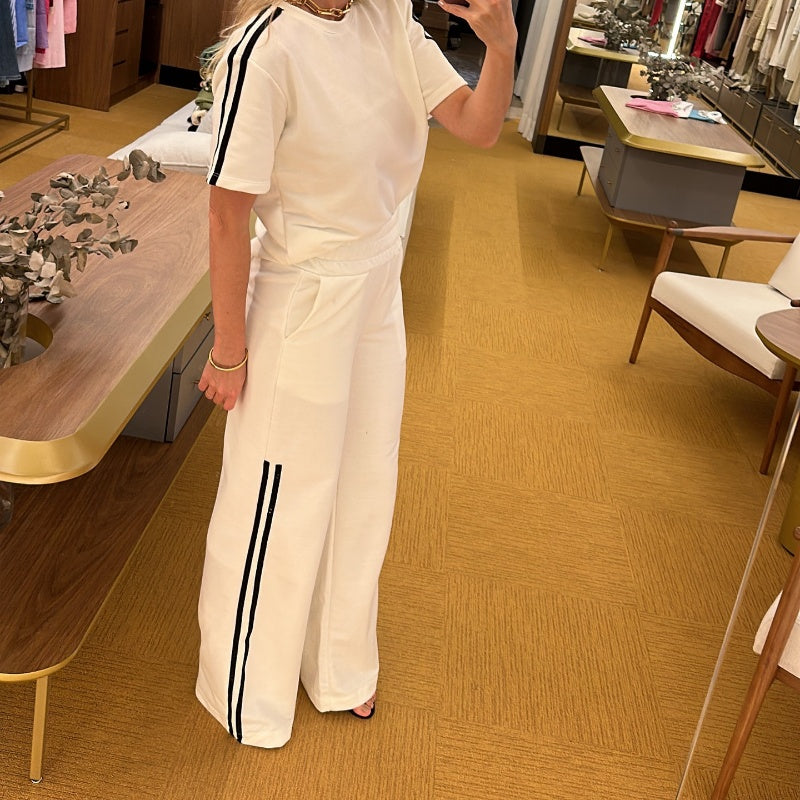 Side Stripes Top Wide Leg Pants 2-Piece Set