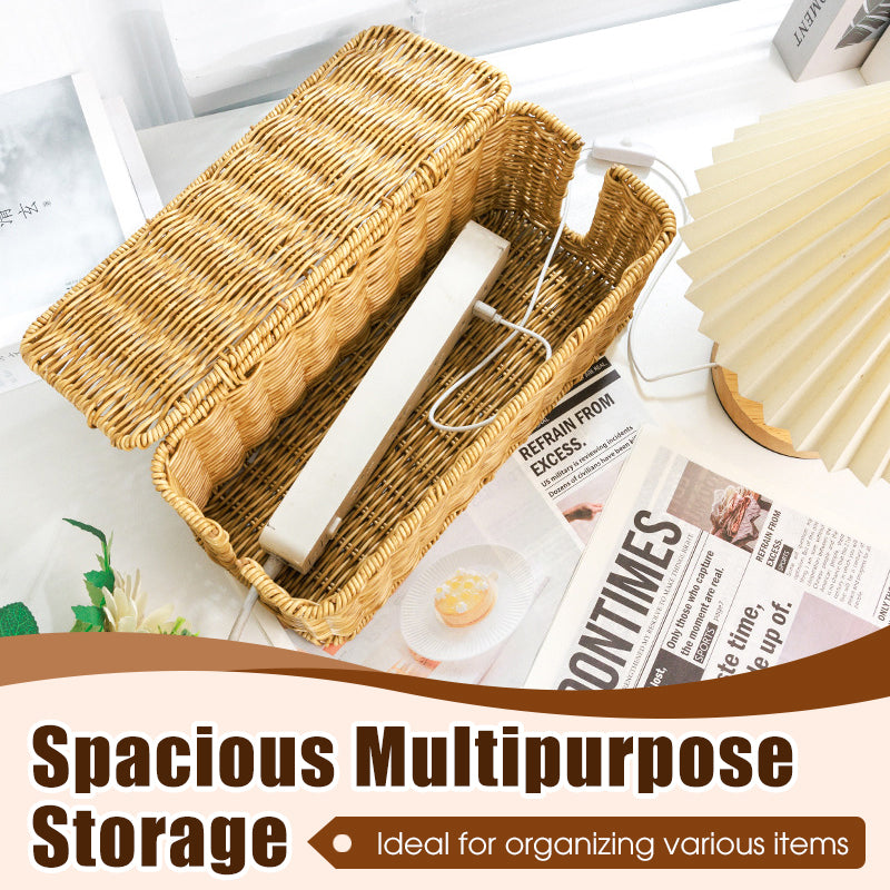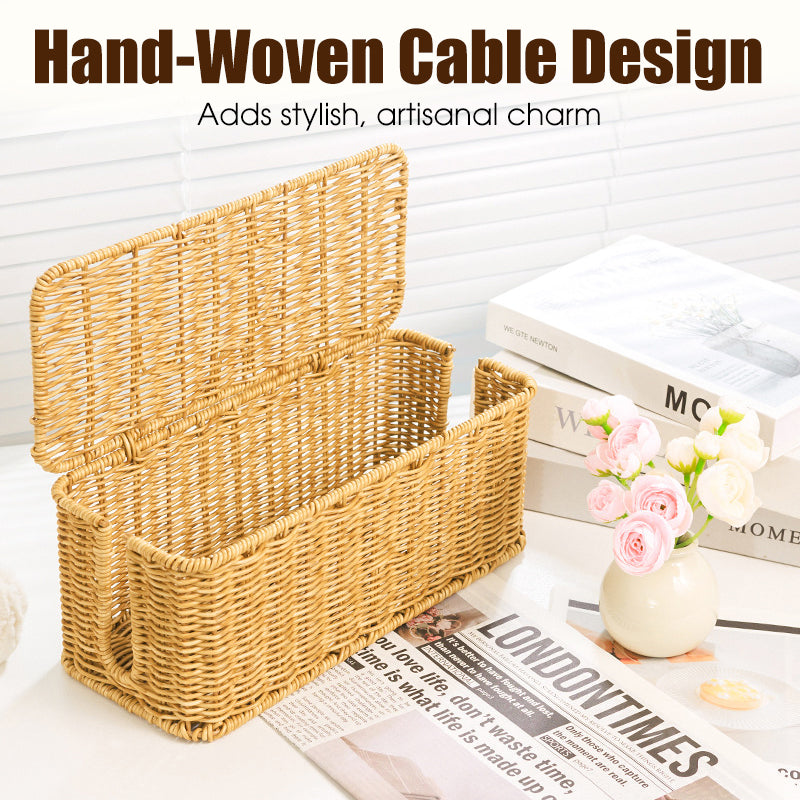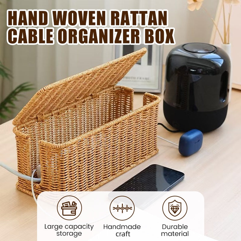 Package Includes: 1 * Hand Woven Rattan Cable Organizer Box with Lid