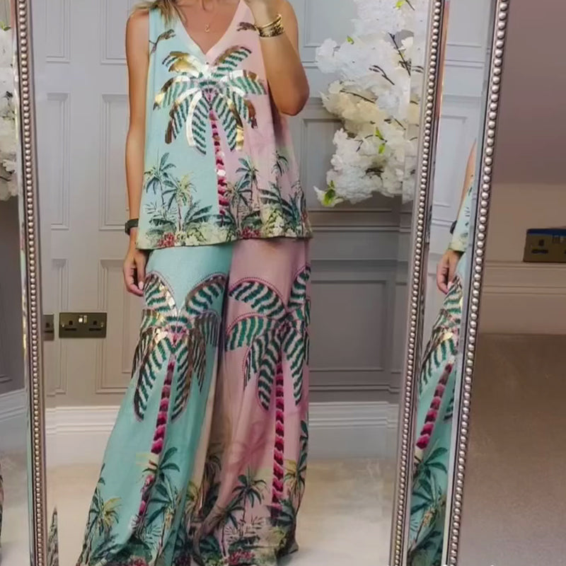 🌴 Tropical Coconut Tree Set: Tank + Pants, Lightweight & Vibrant