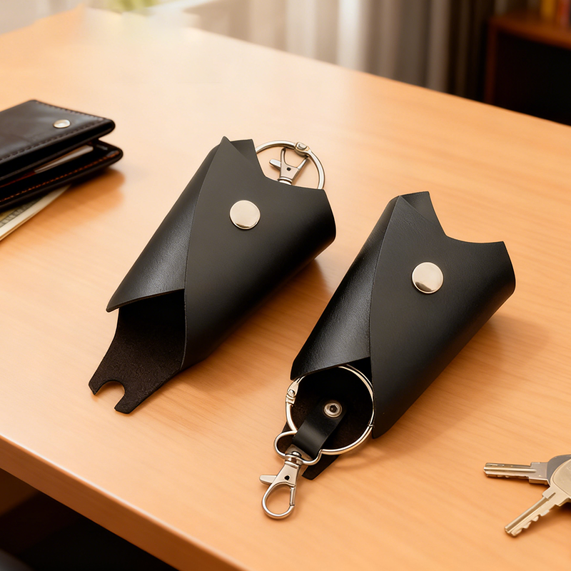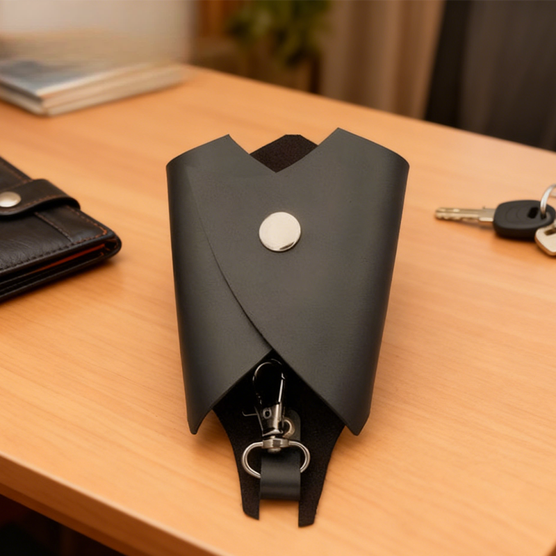 Made with leather and suede stitching, it features a secure zip pocket for coins, keys, or tiny essentials. The metal clip makes it easy to attach to bags, belts, or backpacks. Durable, stylish, and full of personality.