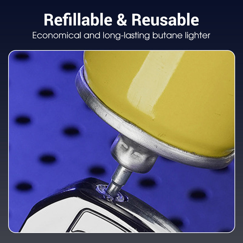 REFILLABLE & REUSABLE: Designed for long-term use with a convenient refillable fuel tank. This makes it an economical and more environmentally friendly alternative to disposable lighters. Simply refill with standard butane.