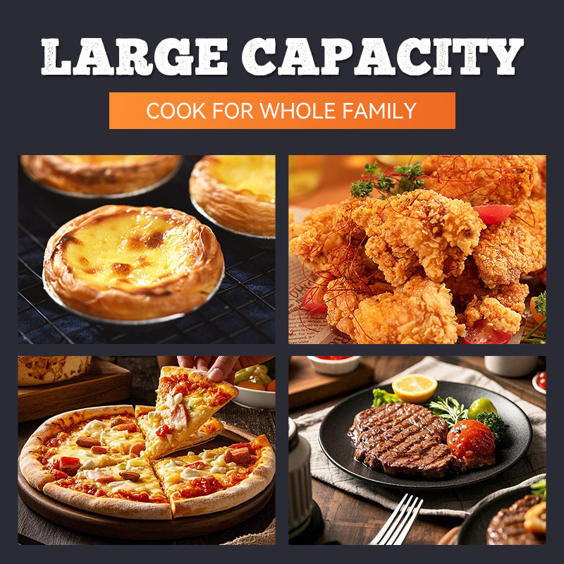LARGE CAPACITY & VERSATILE - The air fryer has a capacity of 15L, which can cook a whole chicken, multiple chicken wings, fries, and even a 7 - inch pizza at once. It can meet the needs of different family members and various cooking scenarios.