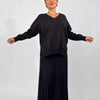Women's V-Neck Knit Top and Pleated Skirt Set